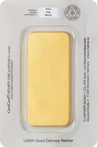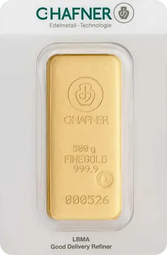 500 G Feingold Goldbarren C.Hafner